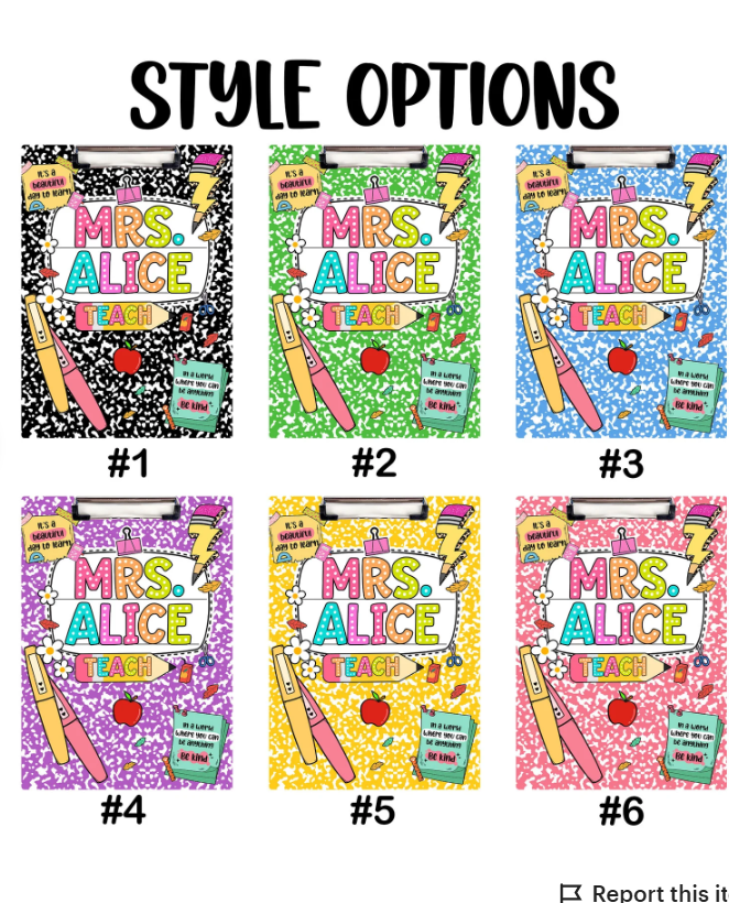 **** You get to select the color and add the teacher's name.